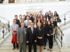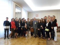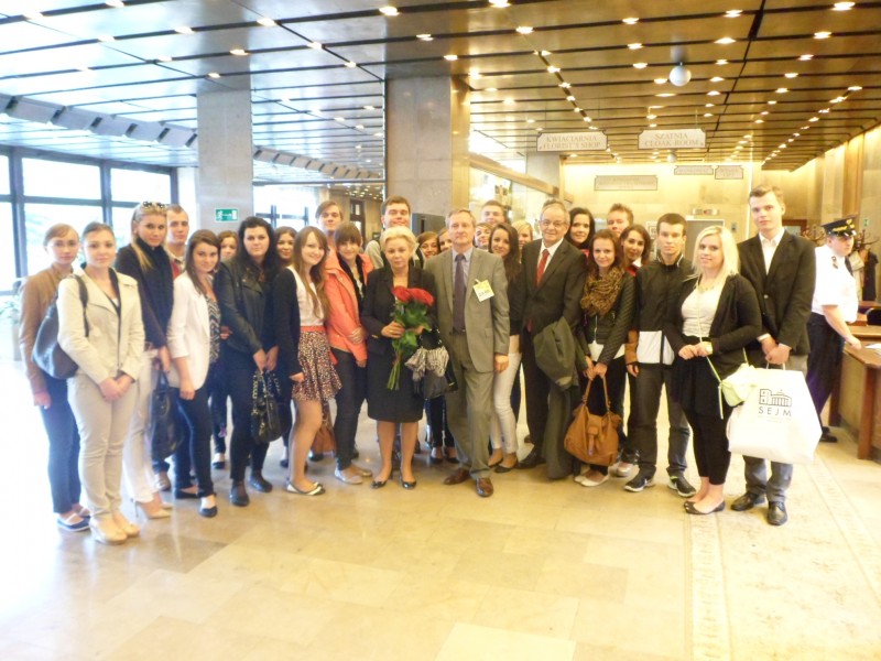 Kolejnym punktem zwiedzania był Sejm RP. Wraz z opiekunem Koła dr Zbigniewem Niezgodą, dzięki uprzejmości rzeszowskich posłów Krystyny Skowrońskiej oraz Tomasza Kamińskiego zwiedziliśmy Sejm. Mieliśmy okazję na spotkanie z Marszałkiem Sejmu Panią Ewą Kopacz, Ministrem Sprawiedliwości Markiem Biernackim, byłym Ministrem Sprawiedliwości Krzysztofem Kwiatkowskim, Ministrem Zdrowia Bartoszek Arłukowiczem, reżyserem i aktorem a obecnie posłem Jerzy Fedorowiczem. Podczas wizyty w Sejmie studenci mogli zobaczyć m.in. gabinet Marszałek Sejmu RP, galerię Sali Posiedzeń Sejmu, Salę Kolumnową, „korytarz marszałkowski” oraz Salę Posiedzeń Senatu. W czasie wizyty w Parlamencie studenci wzięli również udział w obradach Sejmu w charakterze publiczności.