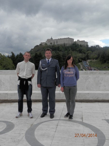 27 kwietnia zwieliśmy udział w uroczystości Kanonizacyjnej naszego Papieża Jana Pawła II co było dla Nas niesamowitym duchowym przeżyciem. Dzień poźniej pojechaliśmy na Monte Cassino. Wzielismy udzial w uroczystości obchodów 70 rocznicy zdobycia Monte Cassino. Tam na grobie gen. Władysława Andersa złożyliśmy wieniec ku czci poległych tam Polskich Żołnierzy. W ten dzień mieliśmy również w planie wyjazd do Pompei zwiedzanie pozostałości po starożytnym mieście, wejście na Wezuwiusza lecz późna pora nie pozwolila nam na zrealizowanie tego celu. Tak więc wróciliśmy do Rzymu i resztę dnia spędziliśmy aktywnie na Placu Św. Piotra.
