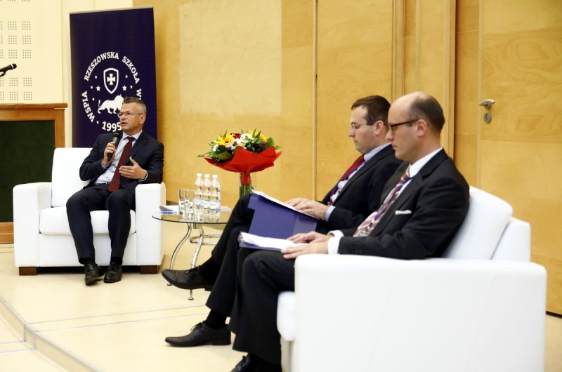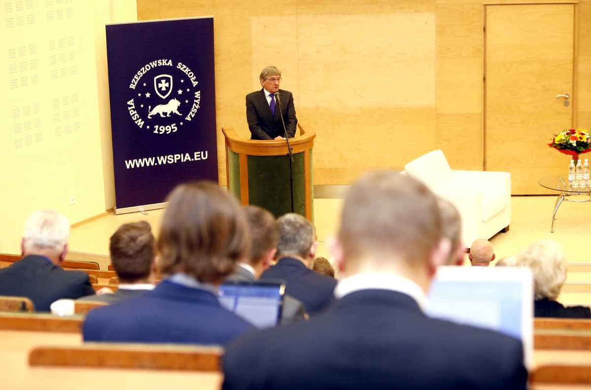 Dodał, że szczególne podziękowania należą się osobom, które szczególnie mocno zaangażowały się w organizacje tego przedsięwzięcia, czyli prof. Andrzejowi Zollowi i prof. Zbigniewowi Ćwiąkalskiemu – wykładowcom WSPiA Rzeszowskiej Szkoły Wyższej.
