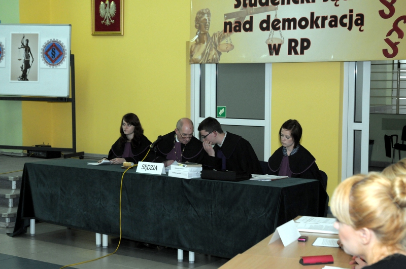 Studencki Sąd nad demokracją odbył się w auli Wyższej Szkoły Prawa i Administracji w Przemyślu. Była to publiczna debata, która miała pokazać plusy i minusy ustroju panującego w naszym kraju. W inscenizacji oprócz studentów uczestniczyli również parlamentarzyści, przedstawiciele różnych korporacji prawniczych, członkowie Zrzeszenia Prawników Polskich, uczniowie szkół ponadgimnazjalnych oraz mieszkańcy Przemyśla. Na świadków powołani zostali m.in. Elżbieta Łukacijewska, Poseł do Parlamentu Europejskiego; Poseł Marek Rząsa oraz Senator Andrzej Matusiewicz.