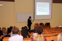 Pierwszy z zaproszonych przez studentów WSPiA gości – mgr Witold Skręt, ginekolog, Dyrektor ds. Medycznych w WZS w Rzeszowie – w czasie swojego wystąpienia mówił o klauzuli sumienia. Rozważał problematykę stosowania tej klauzuli w przypadkach dot. początków życia. – Obecnie traktuje się lekarza jako sprzedawcę usług medycznych. Stosowanie klauzuli sumienia dotyczy najczęściej przypadków takich jak klonowanie czy zapłodnienie pozaustrojowe. Lekarz może kierować się klauzulą sumienia, o ile nie zagraża to życiu pacjenta – podkreślał lek. med. Witold Skręt. W jego opinii klauzula sumienia lekarza nie przekreśla autonomii pacjenta i pozwala lekarzowi na życie w zgodzie z własnymi zasadami moralnymi.