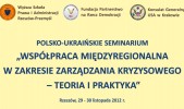 Prawie 60 osób przedstawicieli samorządu, służb odpowiedzialnych za bezpieczeństwo, środowisk akademickich oraz dziennikarzy z Polski i Ukrainy weźmie udział w organizowanym przez WSPiA seminarium nt. zarządzania kryzysowego. Polsko-ukraińskie seminarium odbędzie się w dniach 29-30 listopada 2012 r. w Sali Konferencyjnej Wyższej Szkoły Prawa i Administracji w Rzeszowie. Organizatorem Seminarium jest WSPiA, we współpracy z Fundacją Partnerstwo na Rzecz Demokracji oraz Konsulatem Generalnym USA w Krakowie.