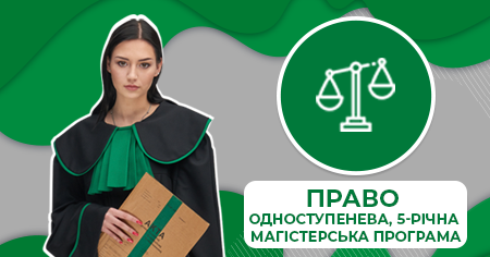 безперервна магістратура (5-річна) на денному та заочному відділенні, що дає право подати аплікацію на роботу у якості: судді, прокурора, адвоката, юрисконсульта, нотаріуса та судового виконавця, а також на роботу за професіями та посадами, наяких вимагається юридична вища освіта,