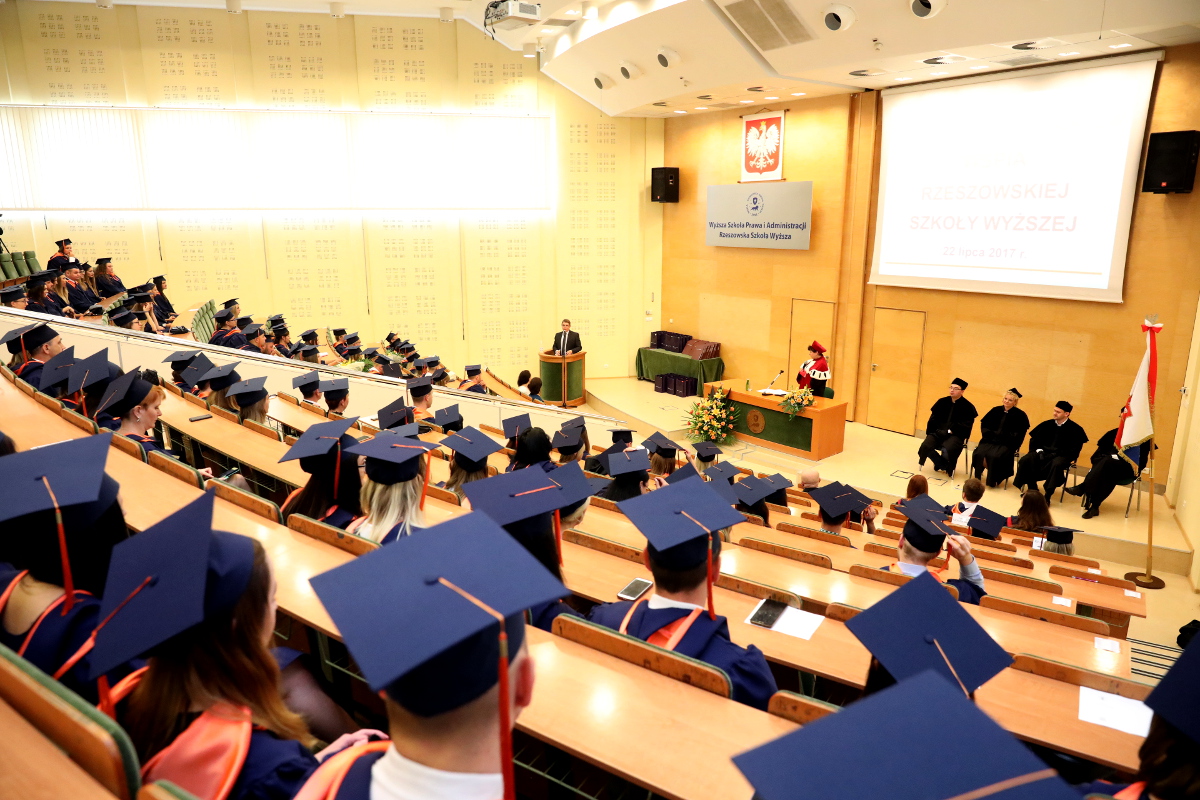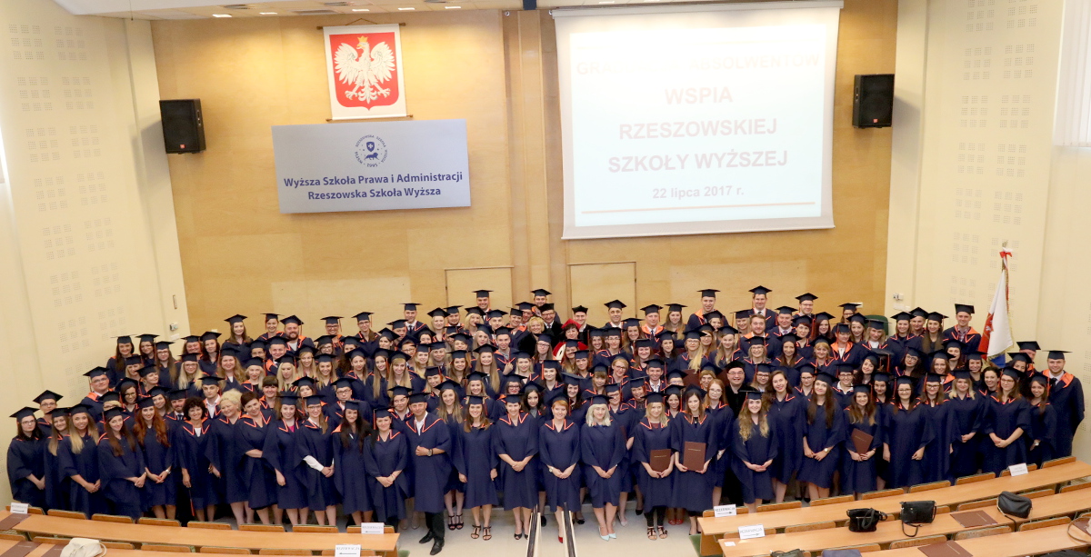 Graduacja absolwentów WSPiA Rzeszowskiej Szkoły Wyższej od wielu lat cieszy się ogromnym zainteresowaniem osób kończących studia w naszej uczelni. Jest to wyjątkowe wydarzenie, podczas którego wszyscy absolwenci ubrani są w togi i birety.