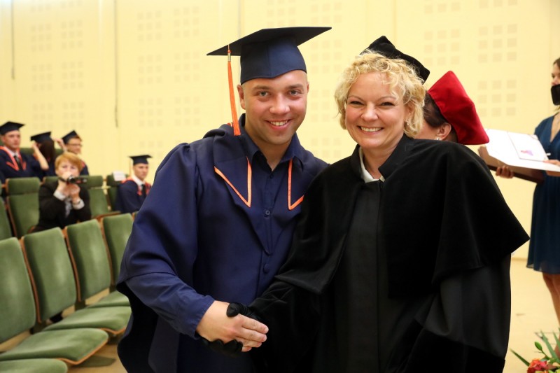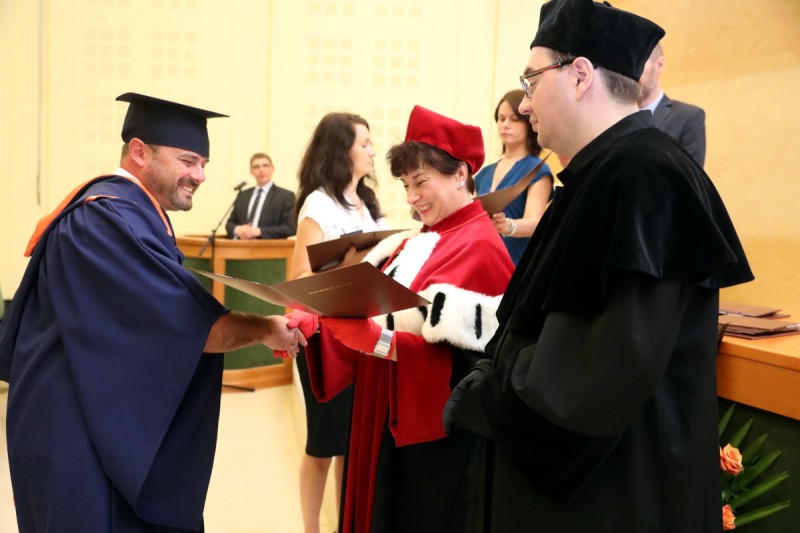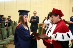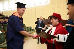 – To bardzo ważny dzień zarówno dla mnie, jak i mojej rodzimy. Wszyscy są tu i cieszą się, razem zemną. Przez pięć lat wiele razy zdawałam egzamin ustny lub pisemny, ale jeszcze nigdy nie denerwowałam się tak jak dzisiaj. Skończyłam studia na kierunku „Prawo” i wiem, że mogę być spokojna o moją przyszłość. Podczas studiów korzystałam z wielu dodatkowych zajęć i kursów. Zbudowałam bardzo mocne CV. Dzięki temu już przed ukończeniem studiów rozpoczęłam pracę w kancelarii adwokackiej. Teraz przede mną egzamin na aplikację. Myślę, że jestem do niego dobrze przygotowana i bez problemu sobie poradzę – mówiła po otrzymaniu dyplomu Anna, absolwenta „Prawa” w WSPiA.