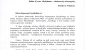 Rektor Lwowskiego Uniwersytetu Narodowego im. Iwana Franki przesłał na ręce prof. Jerzego Posłusznego Rektora, WSPiA podziękowania dla całej społeczności akademickiej naszej Uczelni za wsparcie narodu ukraińskiego w obliczu trwającej wojny.
