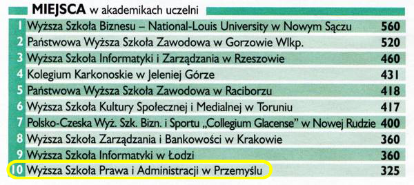 WSPiA nie bierze udziału w każdym prasowym rankingu uczelni wyższych. Dlaczego? Bo wolimy rankingi oparte o rzetelne informacje, a nie te, które formułowane są na podstawie mało wiarygodnych ankiet wypełnianych - bywa - przypadkowo i bez możliwości weryfikacji podanych w takim formularzu danych. W tym rankingu "Prespektyw" (nr 6-8; czerwiec- sierpień) wzięliśmy udział właśnie dlatego, że jest on oparty o łatwe do zweryfikowania fakty.