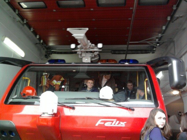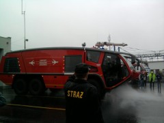 Dodatkową atrakcją wycieczki był też pokaz sprzętu ratowniczo-gaśniczego Straży Pożarnej działającej przy porcie, a także zapoznanie się z zasadami funkcjonowania lotniskowego systemu meteo.
