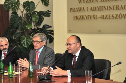 W spotkaniu, które odbyło się w naszej Uczelni, wzięli udział: Jacek Czaja, Wiceminister Sprawiedliwości, który sprawuje patronat nad Akademią, Andrzej Leciak, zastępca dyrektora Krajowej Szkoły Sądownictwa i Prokuratury oraz Jacek Wojtas, Podkarpacki Kurator Oświaty.