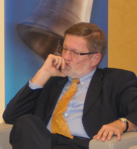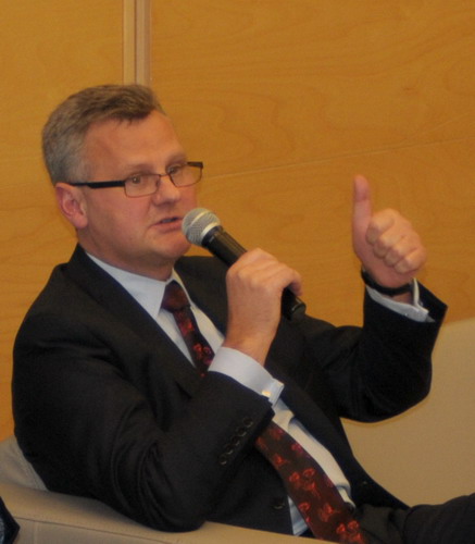 Podczas spotkania „obecny” był także Janusz Lewandowski, b. Minister Przekształceń Własnościowych. Gości konferencji przywitał… z ekranu, na którym wyświetlono jego przemówienie z Brukseli.