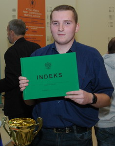 Zarówno eliminacje obwodowe jak i finał na szczeblu wojewódzkim odbyły się w naszej Uczelni. Do Warszawy, na finał ogólnopolski, pojedzie jednak nie tylko Krzysztof, ale i 65. innych uczestników. Zasada jest bowiem taka, że szansę dodatkową otrzymuje każdy uczestnik, który osiągnął wyniki przekraczające ustalony przez organizatorów próg (liczony w punktach otrzymanych za rozwiązanie testu).