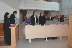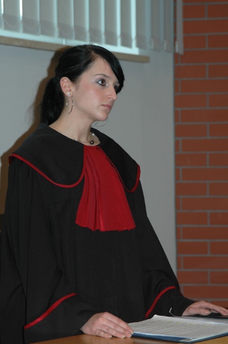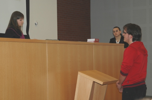 Rozprawa odbyła się we wtorek (22. marca) w naszej uczelnianej Sali Sądowej. Uczniowie odgrywający poszczególne role zachwycili nie tylko znakomitą wiedzą na temat procedury sądowej, ale także… grą aktorską.