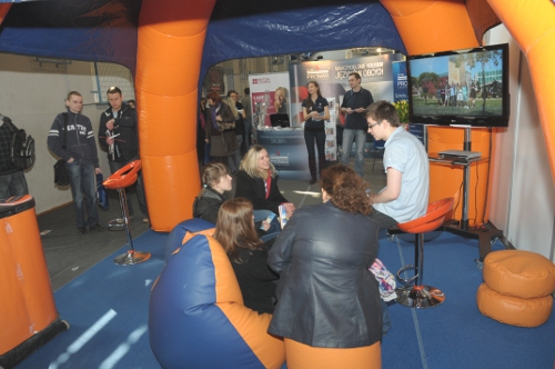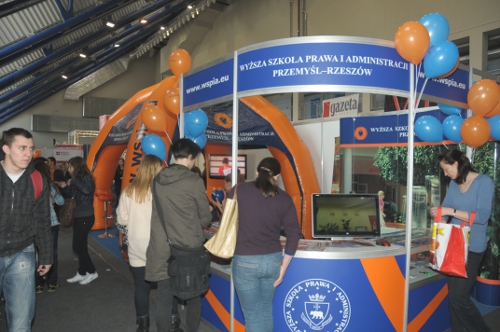 Podczas VI Podkarpackich Targów Edukacyjnych w Rzeszowie (29 - 30. 03.) w ciągu niespełna 3 godzin nasze stoisko odwiedziło w pierwszym dniu ponad 2 tys. uczniów szkół ponadgimnazjalnych. To znaczy, nie tylko uczniów. Przy naszym stoisku pojawił się np. syn z mamą. Syn chce u nas studiować „prawo”, a mama… „bezpieczeństwo wewnętrzne”.