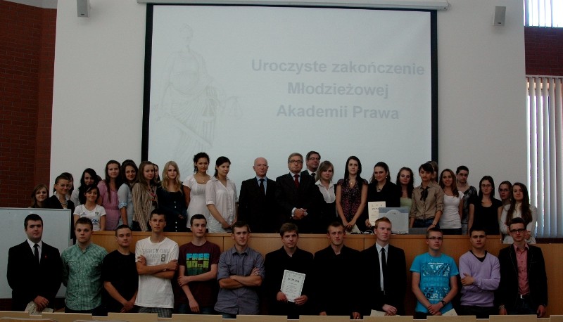 Prawie 40 uczniów szkół ponadgimnazjalnych z Podkarpacia odebrało dziś (13.06) w WSPiA dyplomy ukończenia Młodzieżowej Akademii Prawa. W uroczystym zakończeniu MAP uczestniczyli m.in. prof. Jerzy Posłuszny, Rektor WSPiA, prof. Zbigniew Ćwiąkalski, kierownik Katedry Prawa Karnego WSPiA, były minister sprawiedliwości oraz prof. Andrzej Zoll, wykładowca WSPiA.