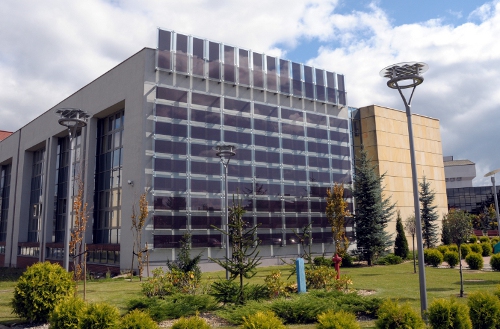 Cześć ekranów absorbujących energię słoneczną zostało wkomponowanych w budynek Collegium Administrativum WSPiA. Instalacji fotowoltaiczna tworzy teraz nowocześnie wyglądającą elewacja budynku.