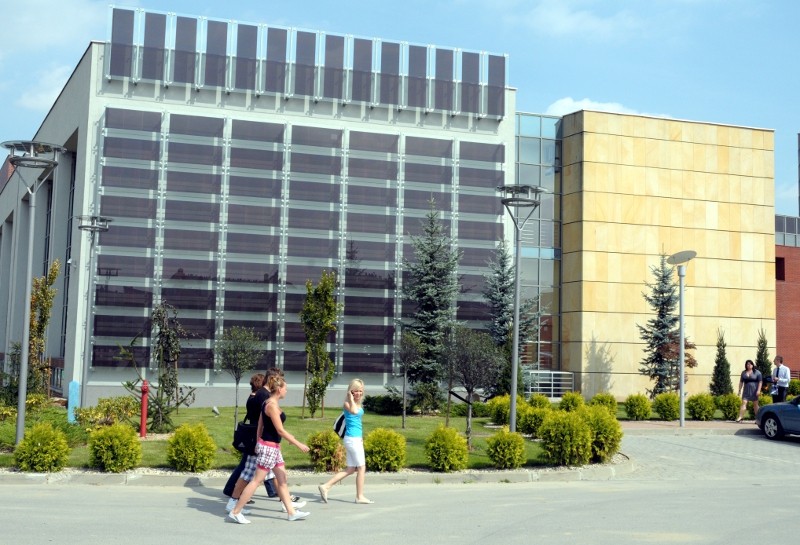 Na zdjęciu: Ogniwa fotowoltaiczne na budynku WSPiA.