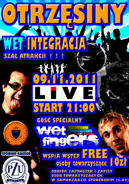 Gwiazdą tegorocznych otrzęsin pierwszaków Wyższej Szkoły Prawa i Administracji będzie duet Wet Fingers. Jest to obecnie jeden z bardziej popularnych duetów na polskiej scenie muzyki tanecznej, tworzony przez dwóch dobrze znanych DJów i producentów – Adamusa i Mafia Mike’a. Duet oprócz muzyki klubowej, komponuje również utwory do filmu, teatru i reklam TV. Jego singel "Turn On Me" został wykorzystany w znakomitym obrazie Jana Komasy - "Sala Samobójców". W programie otrzęsin Samorząd Studencki WSPiA przygotował również mnóstwo konkursów i nagród.