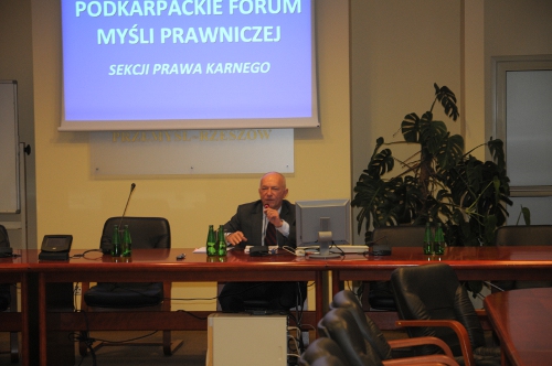W wykładzie wprowadzającym do dyskusji, prof. Zbigniew Ćwiąkalski poruszył temat przepisów Kodeksu karnego dotyczących środków zabezpieczających. Szczególną uwagę zwrócił na zmiany w artykułach 93 i 95a, jakie wprowadzono w kontekście przestępstw na tle seksualnym. Wykład prof. Zbigniewa Ćwiąkalskiego wywołał długą dyskusję. Uczestniczyli w niej obecni w czasie Podkarpackiego Forum Myśli Prawniczej pracownicy naukowo - dydaktyczni WSPiA oraz zaproszeni praktycy.