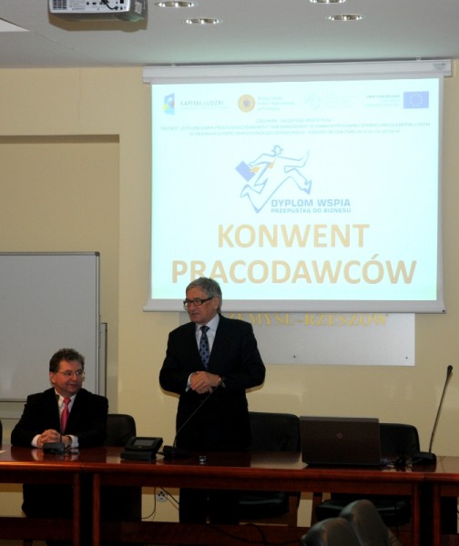 W spotkaniu z pracodawcami z regionu uczestniczył prof. Jerzy Posłuszny, Rektor Wyższej Szkoły Prawa i Administracji oraz dr Mirosław Kurek, koordynator projektu „Dyplom WSPiA przepustka do biznesu”.