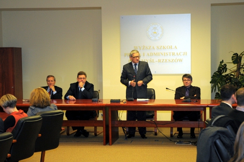 Spotkanie z prof. Jerzym Posłusznym, Rektorem WSPiA oraz wykład prof. Andrzeja Korybskiego zainaugurowały w sobotę (17.12) I edycję Seminarium Doktoranckiego w WSPiA. W postępowaniu kwalifikacyjnym o przyjęcie na Seminarium ubiegało się ponad 110 kandydatów z całej Polski. Na zajęcia przyjętych zostało 53 osoby.