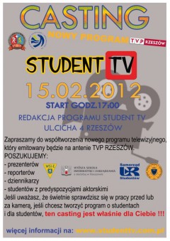 Więcej na temat castingu oraz programu „Student TV” można znaleźć na stronie www.studenttv.com.pl.