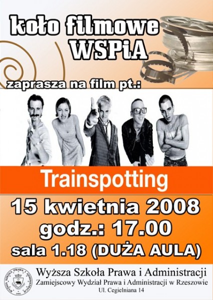 Koło Filmowe WSPiA zaprasza na film pt. "Trainspotting". Projekcja filmu odbędzie się 15 kwietnia 2008, godz. 17.00, sala 1.18 (duża aula).