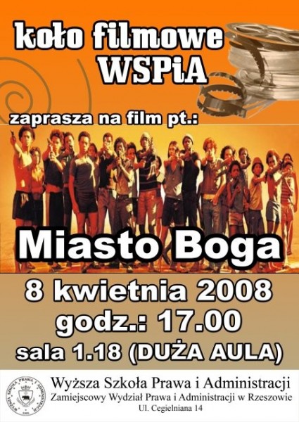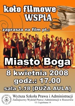 Koło Filmowe Wyższej Szkoły Prawa i Administracji zaprasza na film pt.: „Miasto Boga”.