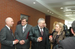 Następnie w swoim wystąpieniu Minister Sprawiedliwości - prof. dr hab. Zbigniew Ćwiąkalski powiedział m.in. „Tej szkole towarzyszę od początku jej powstania, a nawet jeszcze przed jej powstaniem, gdy byłem w Radzie Głównej Nauki Szkolnictwa Wyższego i miałem okazję przyglądać się wnioskowi o utworzenie szkoły. Z wielkim zadowoleniem obserwuję przez cały czas jej istnienia, że łączy najlepsze cechy, których wymaga się od szkolnictwa wyższego - z jednej strony dbanie o wysoki poziom kadry, która jest w tej szkole, którą się zatrudnia i cały czas powiększa; z drugiej strony o wysoki poziom nauczania; z trzeciej strony o tworzenie odpowiednich warunków lokalowych i socjalnych dla studentów. Z przyjemnością patrzę na to, że jest to szkoła, która nie „przejada” pieniędzy, które w formie czesnego wnoszą studenci, tylko te pieniądze inwestuje. Ten obiekt jest dobrym efektem tego, że można – nie korzystając z kredytów, a z własnych środków budować kolejne obiekty, rozwijać szkołę i mieć pomysł na dalsze jej działanie. Dlatego też z wielką satysfakcją uczestniczę w dzisiejszej uroczystości i gratuluję panu rektorowi tego sukcesu, oczekując na kolejny, zapowiedziany przez pana rektora etap, który będzie miał miejsce w październiku.”