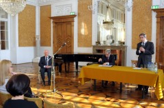 Laudację na cześć Jubilata wygłosił prof. Andrzej Zoll, wykładowca WSPiA były Rzecznik Praw Obywatelskich, a prywatnie przyjaciel Zbigniewa Ćwiąkalskiego. – To ogromna satysfakcja móc przedstawić dorobek Pana Profesora – mówił były Rzecznik Praw Obywatelskich. – Prof. Ćwiąkalskiego poznałem wiele lat temu na boisku podczas meczu piłki nożnej. Ja grałem wtedy w drużynie asystentów, a prof. Ćwiąkalski w drużynie studentów. Ta znajomość trwa bez przerwy już kilkadziesiąt lat – wspominał prof. Andrzej Zoll. W mowie pochwalnej na cześć Jubilata przypomniał, że Zbigniew Ćwiąkalski urodził się w Łańcucie w rodzinie z tradycjami prawniczymi. – Po studiach został asystentem w Katedrze Prawa Karnego Uniwersytetu Jagiellońskiego. Przez lata pracy przygotował wiele wspaniałych publikacje i artykułów, które poparte są wiedzą praktyczną. Oprócz prawa karnego zajmował się również prawami autorskimi i prawami pokrewnymi. Dodatkowo przez wiele lat łączył działalność naukową z działalnością w sferze publicznej. Gratuluję Ci i życzę wielu kolejnych sukcesów zawodowych – mówił prof. Andrzej Zoll.