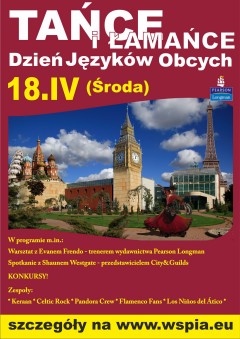 Dzień Języków Obcych pod hasłem „Tańce i łamańce” odbędzie się w najbliższą środę 18 kwietnia 2012 w Kampusie Wyższej Szkoły Prawa i Administracji w Rzeszowie. Początek imprezy o 9:30.
