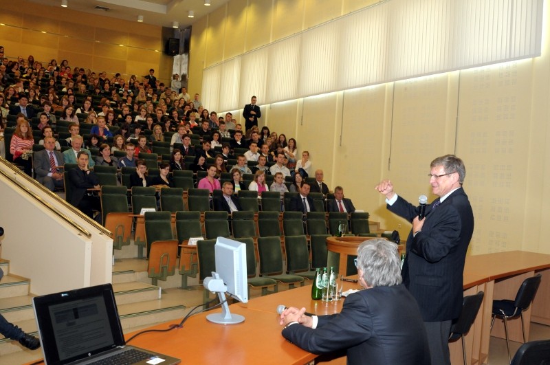 Prof. Leszek Balcerowicz: Pierwsze wrażenie bardzo dobre, ale niestety nie miałem jeszcze okazji, aby dokładniej zwiedzić kampusu ze względu na opóźnienia, które wystąpiły w drodze z lotniska. Nie chciałem się bardzo spóźnić na spotkanie ze studentami i kadrą.
