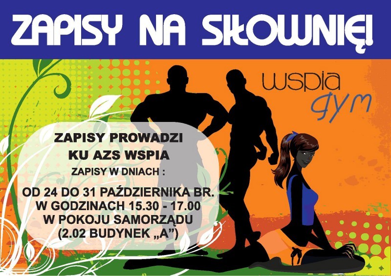 Zapisy odbywać się będą codzienni od 24 do 31 października w godzinach 15.30 - 17.00 z wyłączeniem soboty i niedzieli. Zapisując się na zajęcia w siłowni, studenci mogą wybrać jeden z dni, w których będą odbywać się ćwiczenia. Będzie to: poniedziałek, wtorek lub czwartek w godzinach od 15 do 21.