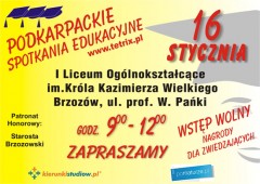 W kolejnym dniu 16 stycznia zapraszamy do Brzozowa do I Liceum Ogólnokształcącego przy ul. prof. W. Pańki 2.