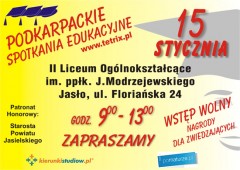 Podkarpackie Spotkania Edukacyjne rozpoczną się w Jaśle. Tam 15 stycznia 2013 zapraszamy na nasze stoisko w II Liceum Ogólnokształcącym w Jaśle przy ul. Floriańskiej 24.
