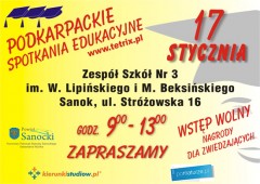 Kolejne miasto, w którym tegoroczni maturzyści będą mogli poznać Wyższą Szkołę Prawa i Administracji to Sanok. W tym mieście Podkarpackie Spotkania Edukacyjne zorganizowane zostaną 17 stycznia w Zespole Szkół Nr 3 w Sanoku przy ul. Stróżowskiej 16.