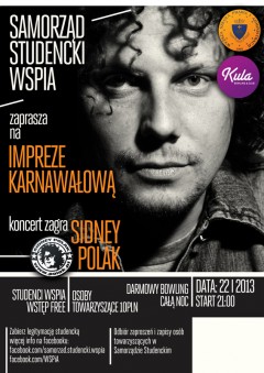 Sidney Polak będzie gwiazda zbliżającej się imprezy karnawałowej dla studentów Wyższej Szkoły Prawa i Administracji. Zabawa odbędzie się w najbliższy wtorek 22 stycznia w rzeszowskim klubie, kręgielni „Kula”. Oprócz koncertu studenci przez całą noc będą mogli za darmo zagrać w kręgle. Strat imprezy o godzinie 21:00. Wstęp dla studentów WSPiA za darmo. Zapraszamy.