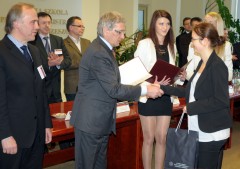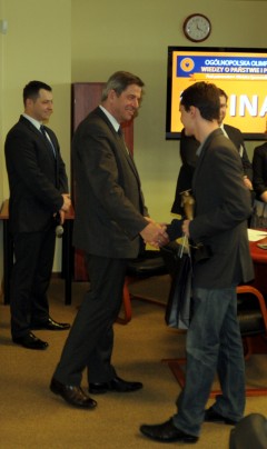 Gratulując młodym ludziom – Prof. Jerzy Posłuszny mówił, że otrzymanie tytułu laureata Ogólnopolskiej Olimpiady Wiedzy o Państwie i Prawie to ogromny sukcesu. – Dla wielu z was jest to pierwszy tak wielki sukces w życiu. O jego wielkości świadczy fakt, iż pokonaliście ponad 4000 uczniów z całej Polski, którzy przystąpili do pierwszego etapu Olimpiady. Państwa wspaniałe wyniki świadczą o tym, że młodzi ludzie nadal bardzo mocno interesują się tematyką prawną, choć jest to trudna tematyka. Wybraliście Olimpiadę, wymagającą wiele nauki. Jednak trud włożony w przygotowania na pewno pomoże wam w przyszłości np. podczas studiów prawniczych. Cieszę się również, że tak znakomici ludzie zasilą szeregi studentów prawa w całej Polsce – powiedział prof. Jerzy Posłuszny. Dodał, że gratulacje należą się również nauczycielom, którzy doskonale przygotowali swoich uczniów do Olimpiady.
