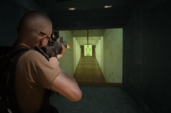 Trenażer w zależności od konfiguracji pozwala na prowadzenie treningu przy pomocy emiterów laserowych widzialnych i niewidzialnych, a także przy użyciu prawdziwej broni. Strzelnica wyposażona jest w repliki broni Glock 17 i Beretta z symulatorem odrzutu, imitującym użycie prawdziwej broni palnej. Dodatkowo w zestawie znalazło się wyposażenie do ćwiczeń z prawdziwą bronią.
