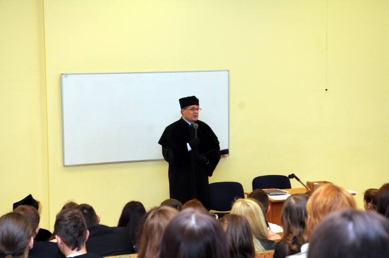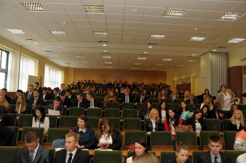 W czasie spotkania studenci mogli poznać zasady studiowania w WSPiA. – Nasza Uczelnia daje wam ogromne możliwości kształcenia specjalistycznego – mówił do studentów prof. Jerzy Posłuszny, Rektor WSPiA. – Dajemy wam możliwości korzystania z większej ilości zajęć praktycznych zawartych w nowym Systemie Kształcenia Praktycznego. System ten obejmuje pięć ścieżek kształcenia praktycznego. Część przedmiotów odbywa się w formie tzw. Triady dydaktycznej: wykład – ćwiczenia – warsztaty. Wszystko po to, aby oprócz teorii przekazać Wam jak najwięcej wiedzy praktycznej – tłumaczył studentom pierwszego roku prof. Jerzy Posłuszny.