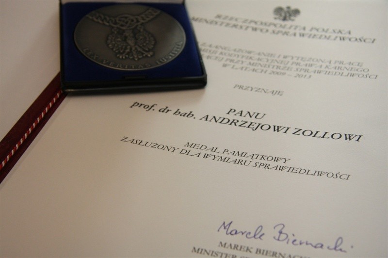 Wręczenie odznaczenia odbyło się podczas ostatniego w tej kadencji plenarnego posiedzenia Komisji Kodyfikacyjnej Prawa Karnego działającej przy Ministrze Sprawiedliwości. Medal „Zasłużony dla Wymiaru Sprawiedliwości” oprócz prof. Andrzeja Zolla, otrzymali również pozostali członkowie Komisji Kodyfikacyjnej Prawa Karnego.