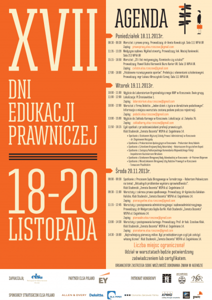 Szczegóły dotyczące XVII Dni Edukacji Prawniczej można znaleźć na stronie www.facebook.com/elsarzeszow.