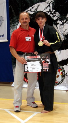 Zawody odbyły się końcem października 2013 r. w Mikołowie na Śląsku. Kinga Salwa, studentka WSPiA reprezentowała na nich Klub Sportowy Ju-jitsu Karate z Rzeszowa. Jak mówi Wiesław Kisiel – trener naszej studentki, medal udało się zdobyć w pięknym stylu. – Dziewczyny wystartowały w konkurencji drużynowej synchron kata seniorów. Należy tu dodać, że nasza drużyna była najmłodsza w grupie doświadczonych zespołów seniorskich z Ukrainy, Węgier, Polski i Słowacji. W zawodach oprócz Kingi Salwy, studentki WSPiA wystartowały także Katarzyna Lisowicz i Natalia Południak. Warto tu dodać, że nikt nie dawał naszym dziewczynom szans na wejście do ścisłego finału. Jednak dzięki wytrwałości i treningowi udało im się wywalczyć najwyższe miejsce na podium – mówi Wiesław Kisiel.