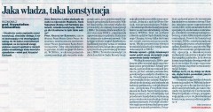 W teorii konstytucjonalizmu pojawiło się rozróżnienie na konstytucje rzeczywiste i fikcyjne. Jego twórcą jest Ferdynand Lassalle. Konstytucja rzeczywista to jest ta wg, której realnie sprawowana jest władza, a konstytucja fikcyjna jest tylko "zapisaną kartką papieru". Konstytucja aby była przestrzegana i szanowana musi odzwierciedlać rzeczywisty system sprawowania władzy. Różnie mogą potoczyć się prace nad przyszłą konstytucją Ukrainy. Często treść konstytucji, przyjmowane w niej rozwiązania są odpowiedzią na bardzo wyraźne aktualne potrzeby polityczne albo wprost personalne. W historii mamy wiele przykładów, gdy pisano konstytucje "pod kogoś lub przeciwko komuś". Nasza konstytucja z 1935 roku została napisana dla człowieka pokroju Piłsudskiego - z silną pozycją prezydenta, choć było wiadomo, że Piłsudski raczej już z tych kompetencji nie skorzysta. Z kolei konstytucję marcową z 1921 r. napisano trochę "przeciwko" Piłsudskiemu, funkcja prezydenta została bardzo osłabiona. We Francji Konstytucję V Republiki napisano "pod" prezydenturę generała de Gaulle'a. Zgadzam się, że konstytucją czasami się manipuluje. Ukraińców z pewnością czeka napisanie nowej konstytucji chociażby dlatego, iż sami dostrzegają w tej obowiązującej obecnie szereg nie do końca przemyślanych rozwiązań, na co zwracali uwagę podczas naszych spotkań w ramach Polsko-Ukraińskiego Klubu Konstytucjonalistów.