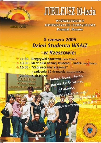 Z okazji 10-lecia WSAiZ 8 czerwca w Rzeszowie odbył się Dzień Studenta WSAiZ.