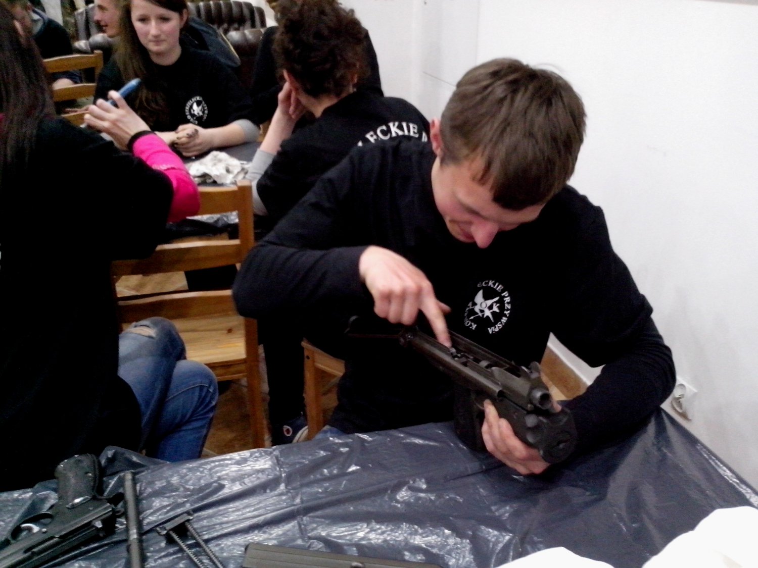 Podczas szkolenia studenci poznali zasady bezpiecznego zachowania się na strzelnicy. Uczestniczyli również w warsztatach teoretycznych dotyczących zasad bezpiecznej obsługi broni palnej, czyszczenia oraz składaniu i rozkładaniu 5 różnych rodzajów broni. Studenci poznali budowę m.in.: Pistoletu Cz-75 KADET, Rewolweru Taurus, Pistoletu Glock 17 oraz PM-98 glauberyt.
