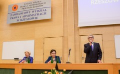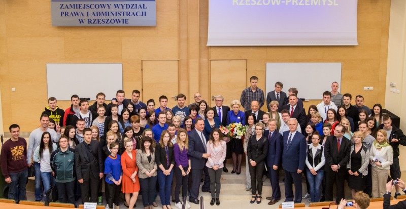 Spotkanie z Panią Ewą Kopacz, Marszałkiem Sejmu RP, zakończyło wspólne zdjęcie ze studentami WSPiA oraz konferencja prasowa z dziennikarzami. Ewa Kopacz przyjechała do Wyższej Szkoły Prawa i Administracji na zaproszenie Pani Poseł Krystyny Skowrońskiej. W czasie wizyty spotkała się ze studentami WSPiA oraz uczniami szkół ponadgimnazjalnych z Rzeszowa i okolic. Wygłosiła również wykład na temat „25 lat Polskiej demokracji, inwestycje w specjalnych strefach ekonomicznych oraz fundusze europejskie dla młodych ludzi”.