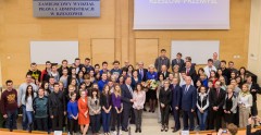 W spotkaniu zorganizowanym w Auli WSPiA uczestniczyli m.in. prof. Jerzy Posłuszny, Rektor WSPiA, Poseł Krystyna Skowrońska, członek konwentu WSPiA, Poseł Piotr Tomański, Wiceprezes PARP Teresa Kubas-Hul oraz Prezydent Miasta Rzeszowa Tadeusz Ferenc.