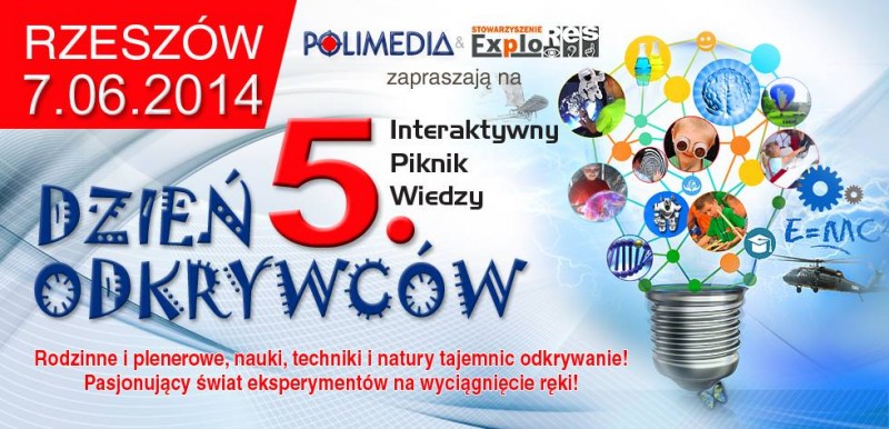 Dzień Odkrywców – 5. Interaktywny Piknik Wiedzy odbędzie się 7 czerwca 2014 w godzinach od 11:00 do 18:00. Organizatorem imprezy jest Stowarzyszenie EXPLORES oraz firma POLIMEDIA.
