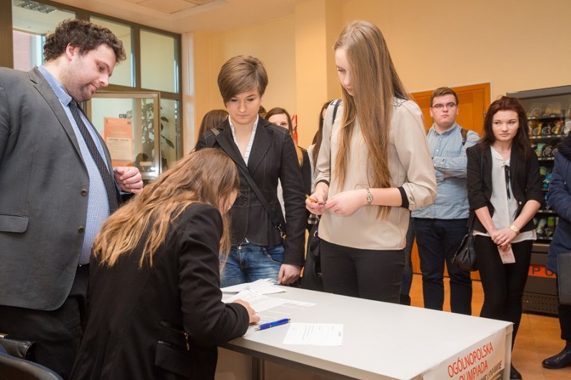 Pierwsi uczestnicy tegorocznej Olimpiady pojawili się w kampusie WSPiA w Rzeszowie już przed godziną 10:00. Czekając na rozpoczęcie II Etapu, przeglądali jeszcze notatki i zastanawiali się, jakie pytania pojawią się na teście. Jak mówiła przed Olimpiadą Ewelina Nguyen z I Liceum Ogólnokształcące im. J. Słowackiego w Przemyślu na razie nie wie czego się spodziewać. – Zobaczę, jak mi pójdzie, choć wiem, że zawsze można nauczyć się czegoś więcej. Stres mi towarzyszy jednak mam świadomość, że nie jest to matura i jak nie poradzę sobie z testem, to nie będzie to koniec świata. Czy uda mi się dostać do finału? Trudno teraz określić. Jest bardzo mocna konkurencja – tłumaczy Ewelina Nguyen. Dodaje, że w Olimpiadzie bierze udział, bo chce studiować Prawo, a wiedza zdobyta podczas przygotowywania się do testu na pewno przyda jej się w przyszłości.