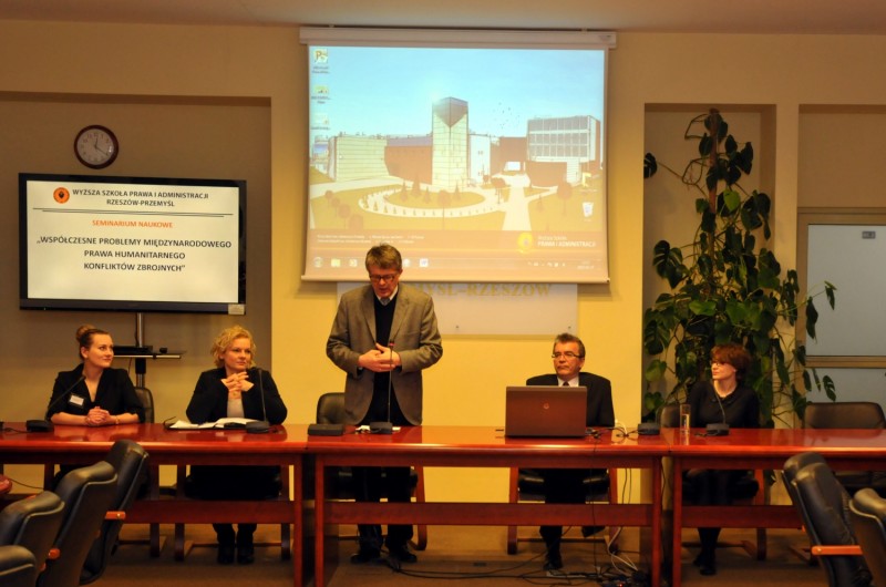 Podkarpackiego Forum Myśli o Bezpieczeństwie w WSPiA podzielone został na dwie części. W pierwszej b. Konsul Generalny RP na Ukrainie – Ambasador Jakub Wołąsiewicz opowiedział studentom m.in. o kulisach konfliktu na Ukrainie oraz o sprawach dotykających miejscowej ludności, które często bywają przemilczane w mediach. W drugiej członkowie Koła Naukowego Prawa Międzynarodowego działającego w WSPiA wygłosili referaty na temat sytuacji na Ukrainie w świetle współczesnego międzynarodowego prawa humanitarnego.